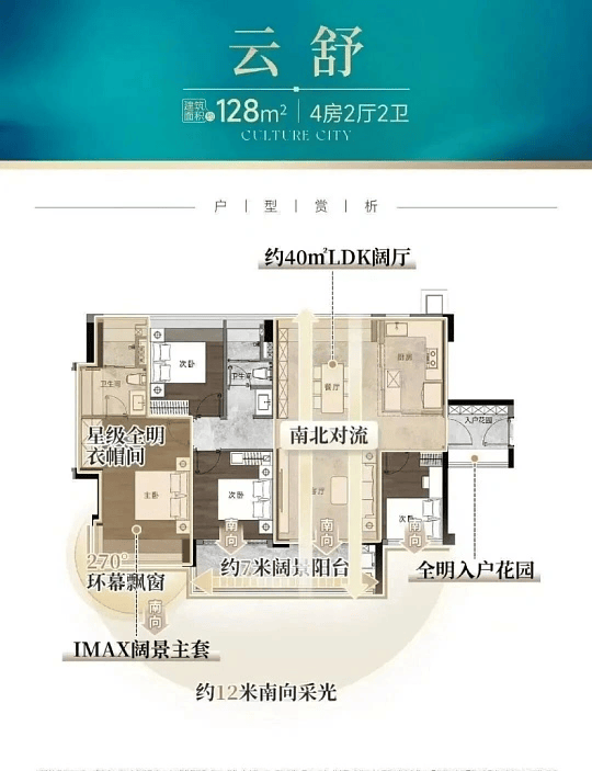 主力户型:建面约 107㎡四房、建面约 128㎡四房、建面约 143㎡四房、建面约 181㎡四房