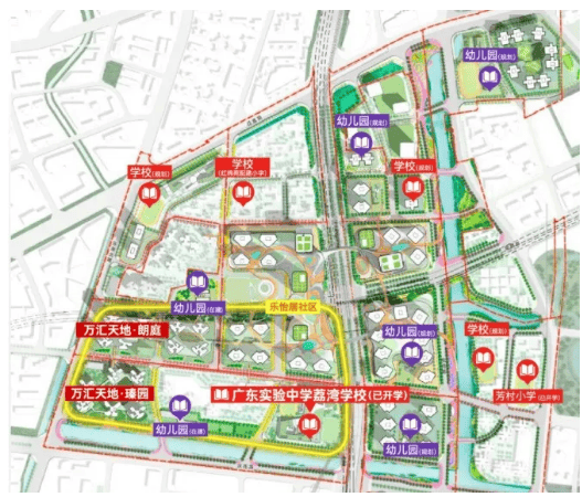 除了自身配建的九年制省实学校,整个万汇天地(花地湾连片开发项目)还规划了7所幼儿园、3所小学、3所中学,形成从幼儿园到初中的一站式教育体系,覆盖孩子不同年龄段的教育需求,让孩子在成长过程中能够接受连贯、优质的教育,营造良好的成长环境。
