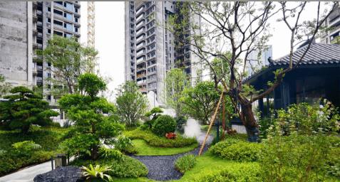 东建明德城以“中式园景、全龄生态”为规划核心,打造高负氧离子、高舒适度、高仪式感的多氧居住空间,在主城核心区营造出自然雅致的生态栖居环境。外部生态层面,项目周边紧邻城市生态绿廊、社区公园等生态资源,绿植覆盖率高、空气清新、环境静谧,是日常散步、慢跑、康养放松的优质场所,让居者在主城繁华中亦可拥抱自然绿意。内部园林层面,项目悦府中式实景园林现已全面开放,采用岭南中式造园手法,打造归家喷泉水景、造型松景观、巨幅玻璃景墙等仪式感节点,进门即享尊崇归家体验;园林内部布局花滨亭、休闲连廊、景观绿植组团等中式景观节点,移步异景、意境雅致;同时针对性打造猫猫主题儿童乐园、全龄活动区、休闲步道等功能性空间,兼顾观赏性与实用性,满足儿童嬉戏、青年休闲、长者康养的全龄段需求。社区采用科学楼栋排布与通透布局,保障良好通风与充足采光,减少楼栋遮挡,提升景观视野;同时实行人车分流规划,降低尾气、噪音与行车干扰,营造安全、静谧、舒适的社区环境。内外双园生态体系,让居者每日置身鲜氧环绕之中,实现健康、放松、雅致的高端居住体验。