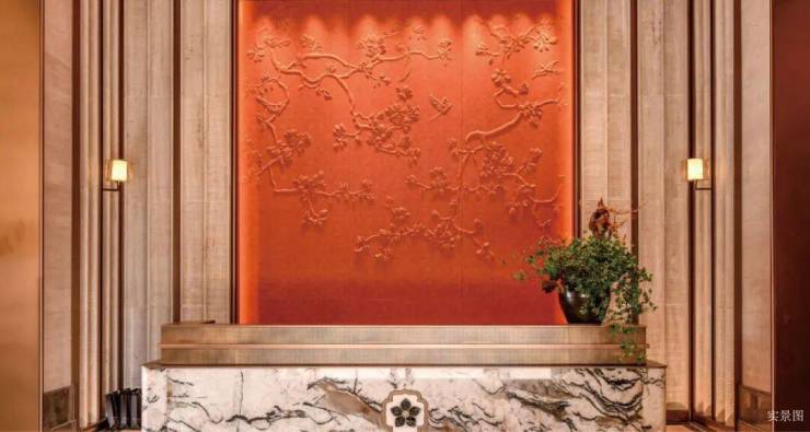 【泗水归堂】取春天清风徐来、水波不兴的意象,以“广绣隐现、幕墙灵动”为设计概念,打造泗水归堂空间入口照壁屏风,彰显归家尊贵感与品质