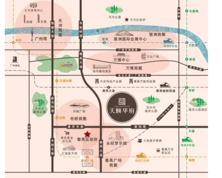 天颐华府的交通优势堪称“立体化黄金枢纽”。项目门口即为地铁3号线、18号线、22号线三线交汇的番禺广场站,其中18号线作为“湾区最快地铁”,4站直达珠江新城,3站抵达琶洲,1站连接万博CBD;22号线则直通广州南站,无缝衔接高铁网络,15分钟内可通达全国。自驾方面,项目紧邻番禺大道、南沙港快速、新光快速等城市主干道,无论是前往天河金融城、琶洲会展,还是南沙国际航运中心,均在半小时生活圈内。更难得的是,如此高效的通勤效率并未牺牲居住宁静——项目采用全人车分流设计,地下车库电梯直入户,既享都市脉搏,又避喧嚣干扰,真正实现“出则繁华,入则静谧”的理想生活节奏。
