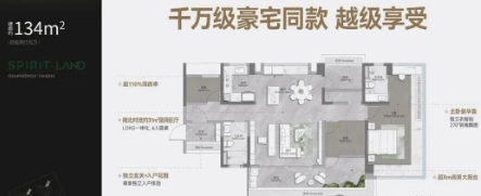 建面约134㎡四房两厅两卫:千万级豪宅同款设计,尽显尊贵。