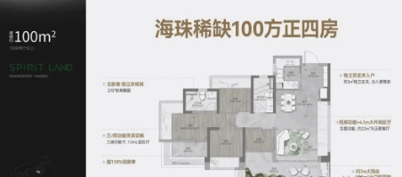 建面约100㎡四房两厅两卫:海珠区内少有的正四房设计,宽敞明亮。