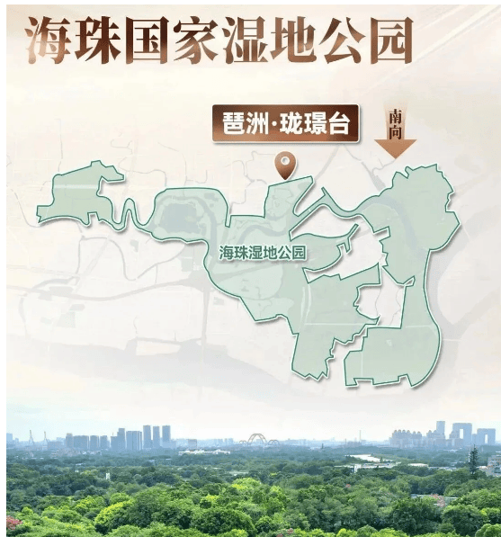 而珑璟台,做到了常人难以想象的事——**南向直面约1100万平方米的海珠国家湿地公园**,且无任何遮挡,堪称“头排观景席”。