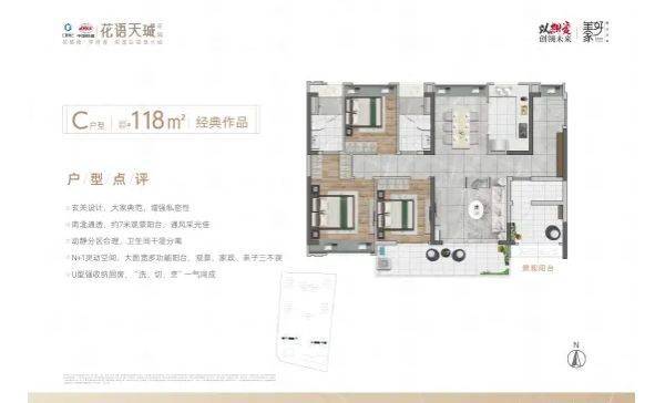 户型设计实用且多样。推出约 97㎡2 + 2 多功能空间,同等面积多一房,超 85% 使用率,双静动分离格局,满足不同生活场景需求。约 118㎡3 + 1 多功能空间,入户带玄关,增加居住私密性,兼顾舒适性与功能性,南北通透,约 7 米景观阳台连接客厅。约 137㎡3 + 1 多功能空间,约 7.5m 观景阳台,南北对流,阔绰主套带步入式卫生间,满足三代同堂居住需求。整体户型设计合理,空间利用率高,能满足不同家庭结构的需求。