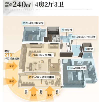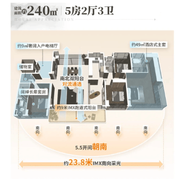 建筑与户型:120-240㎡全南向板楼大平层,低密景观+豪宅级层高天花板