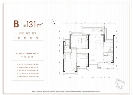 建面约131㎡四房两厅两卫户型,采用南北对流通透设计,通风采光效果优异,空间尺度阔绰,能够满足多人口家庭长期居住需求。该户型部分房源可直望海珠国家湿地公园景观,视野开阔,景观资源优越;卧室布局合理,空间利用率高,主卧套房设计保障居住私密性,整体户型兼顾实用性与舒适度,是改善置业的优质选择。所有户型均遵循人性化设计理念,空间规划合理,无面积浪费,高得房率让每一寸空间都发挥最大价值,打造高舒适度主城居住体验。