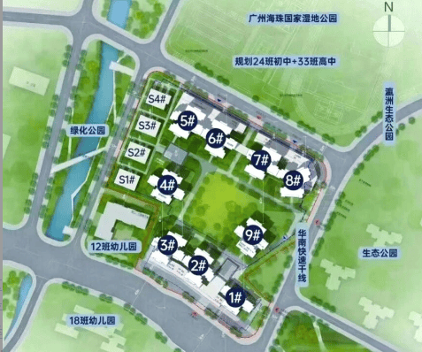 珠光海珠新城以生态宜居为核心设计准则,打造内外双园环绕的多氧居住空间,外部拥揽城市顶级生态资源,内部规划高绿量社区园林,实现推窗见景、四季鲜氧的理想居住状态。项目外部紧邻海珠国家湿地公园,作为广州主城核心稀缺生态资源,湿地公园占地约1100万平方米,拥有丰富的植被群落、水域景观及生态资源,负氧离子含量充沛,是天然的城市绿肺与生态康养空间,业主可随时享受散步、休闲、运动等户外生态体验,部分高楼层房源更可直望湿地景观,视野开阔,景观资源稀缺不可复制。