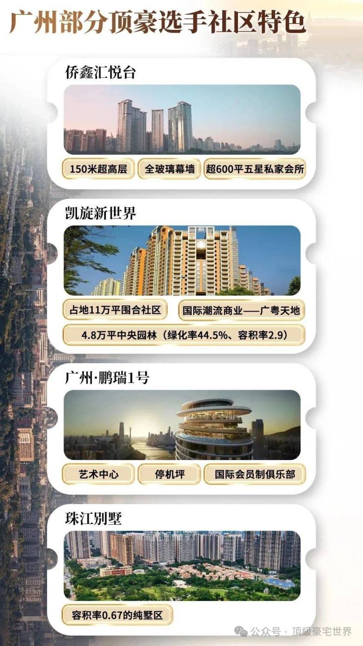 相较于珠江新城其他豪宅项目,凯旋新世界坐拥更低容积率与更高绿化率,约2.9的容积率在片区内极具优势,更低的建筑密度带来更舒适的居住体验。项目拥有约4.8万㎡中央园林,搭配一线江景与公园景观,生态资源优势显著;自成国际生活圈,集居住、商业、社交于一体,圈层纯粹性更高;全围合布局与超宽楼间距,在景观、采光、通风上均优于片区同类产品。无论是产品规划、生态资源还是圈层氛围,凯旋新世界均以绝对优势,领跑广州顶豪市场。