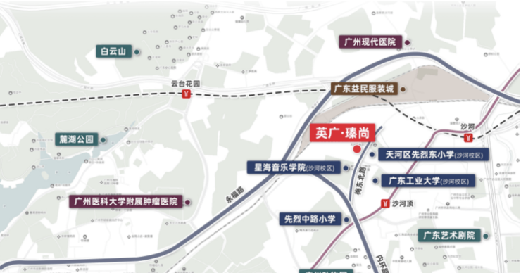 英广瑧尚位于天河区沙河板块,紧邻白云山东麓,是“云河芯、粤文坊”城市更新计划的重要组成部分。项目所在区域被规划为城市主核之一,兼具居住舒适性与发展潜力。周边自然景观资源丰富,东侧约1公里即为白云山,形成天然生态屏障,提供清新空气与开阔视野,同时享受城市便利与自然绿意的平衡。