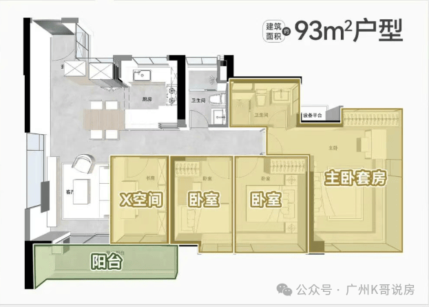 建面约 93㎡南向四空间户型,是项目专为刚改客户打造的高实用性爆款户型,该户型实现了四空间全部朝南,每一扇南窗都能无遮挡引入室外的景观与阳光,实现了厅房景观平权,无论是客厅还是每一间卧室,都能享受到充足的南向采光与优质的景观视野。该户型采用极致的空间利用设计,在保留 3 个卧室空间的基础上,额外打造了一个多功能空间,为家庭生活提供了更多的可能性,可根据家庭需求,改造为独立书房、儿童游乐房、茶室、储物间、长辈房等,完美适配多孩家庭、三代同堂家庭的居住需求,实用性拉满。该户型拥有两种可改造的布局方案,传统竖厅布局可打造独立的多功能房,满足多空间的居住需求;多功能横厅布局可将客厅开间扩大至与阳台同宽,打造超大尺度的 LDK 一体化方厅,既提升了室内的空间感与通透感,又为家庭互动、朋友聚会提供了超大的公共空间,满足多元化的生活场景需求。整体户型布局方正,动静分区合理,无任何浪费面积,超高的空间使用率,让 93㎡的面积段实现了四房的居住功能,完美适配刚改家庭的居住需求,是入主海珠核心的高性价比刚改优选。