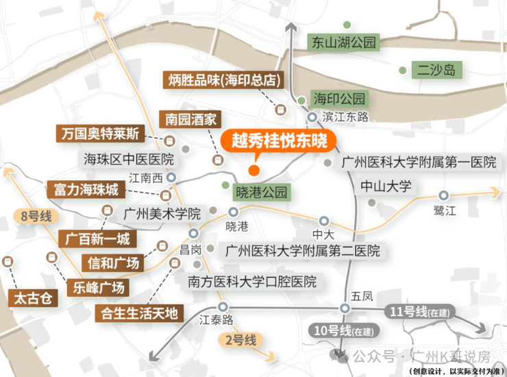 海珠主城核心地段,全维度成熟配套。项目坐落于海珠区东晓路核心成熟板块,地处广州主城中心区位,周边交通、教育、商业、医疗、生态配套经过数十年积淀,已经极为完善成熟,入住即可享受主城核心的全维度便捷生活,无需等待配套落地,是主城核心难得的成熟人居项目。