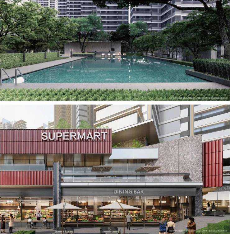 项目容积率3.86(穗规资〔2025〕18号文批复),绿化率35%,楼间距85米确保每户冬至日日照≥3小时。北地块整体抬高约11.2米(含地块抬高5.2米+架空层6米),优化通风采光效果。社区内规划超3000㎡街区商业、约1000㎡精品超市,配备健身房、游泳池、儿童游乐区等高端设施。园林设计由上海澜道执笔,打造“两轴四园五进院”递进式景观,实现全龄共享的沉浸式互动体验。