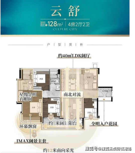 建面约128㎡四房:注重空间舒适度,做到约16米南向采光、南北对流,拥有一个约40㎡LDK阔厅,碾压市场同面积产品,空间开阔通透,适合四口之家居住,无论是日常起居,还是会客聚餐,都能轻松应对。