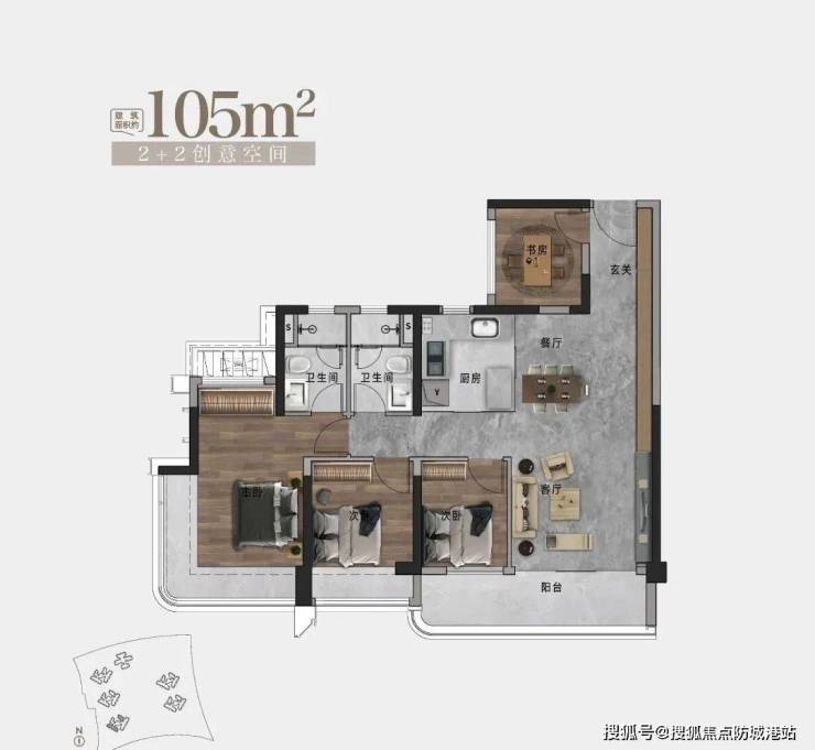 105㎡四房:四开间朝南,90%房间采光,总价约556.5万元