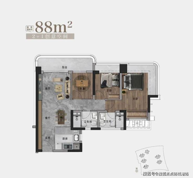 88㎡三房:5.7米巨幕阳台+270°环幕主卧,LDKB一体化设计,总价约466.4万元