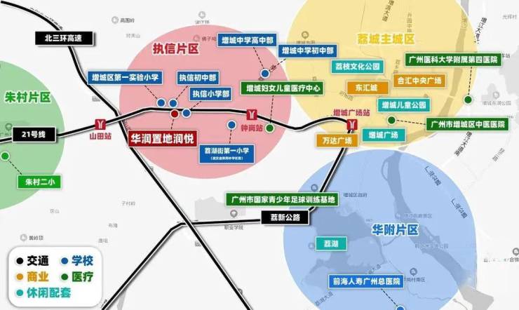 城际轨道方面,项目 1 站即可接驳穗广深城际、新白广城际两大城际轨道线路,向北可快速抵达白云国际机场,向南无缝衔接东莞、深圳等珠三角核心城市,对于跨城上班、短途探亲、商务出行的业主来说,出行效率大幅提升。地面路网同样完善,形成 2 城际、2 快速、4 高速的立体交通格局,项目紧邻广汕公路主干道,衔接新新快速、荔新公路两大城市快速路,轻松接驳广园快速,快速直达广州中心城区。