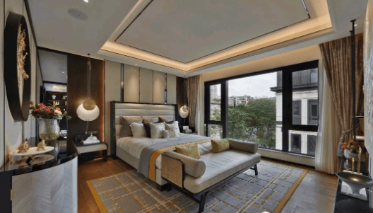 三层为专属主卧系统,打造豪华套间设计,涵盖卧室、步入式衣帽间、独立卫浴、观景露台等功能区域,空间开阔,私密性极佳。主卧南北通透,采光充足,观景露台可俯瞰社区园林景观,让主人在繁华市中心也能拥有独立立体的尊贵空间。此外,户型设计遵循中式建筑的对称美学与礼序格局,每一处空间都精心规划,实现实用性与美学性的完美融合,让院落生活充满质感与温度。