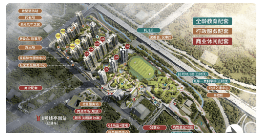 教育配套:配建九年一贯制公办学校(已签约引进广州大学附属中学教育集团资源),配建18班幼儿园。