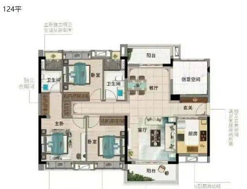 产品面积覆盖范围较广,包括约73㎡、84㎡、88㎡、96㎡、110㎡及124㎡等户型区间,涵盖多种使用场景,从两房至四房均有对应产品,适配不同阶段家庭结构。