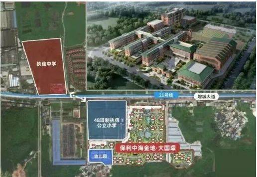 教育体系是该板块的重要特征之一。大国璟社区内部规划托儿所及幼儿园,建筑面积分别约为1200㎡与9400㎡,为社区幼儿阶段提供近距离教育服务。项目邻近执信中学增城实验学校,为九年一贯制公立学校,包含小学与初中部,居民可在社区周边形成较为完整的基础教育通道。