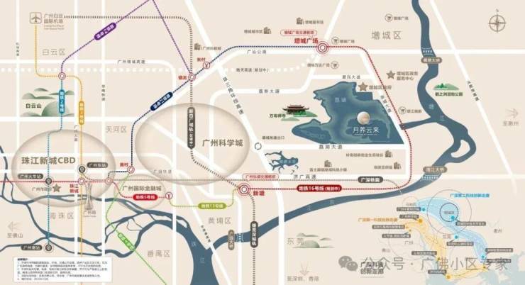 项目雄踞广州东荔湖新城核心板块,坐落于荔湖湖心岛之上,与增城区府隔湖相望,地处增城政治、经济、文化、教育四大中心交汇地带,区位优势得天独厚。荔湖新城作为增城官方重点打造的城市新中轴,2020年增城正式发布《关于荔湖新城城市设计方案的征集意见公告》,明确其定位为增城中央商务核心区,规划以荔湖为中心,分为南北两区,涵盖1个核心区、7个功能组团,向北衔接增城老城区中心,向南对接增城火车站综合枢纽,未来将发展成为集创新产业发展引擎、都市特色生态名片于一体的湾区东岸现代新城。项目所在的湖心岛板块,是荔湖新城核心区内稀缺的生态秘境,形成“新城核心+湖心岛”的稀缺区位组合,媲美广州财富制高点“珠江新城+二沙岛”,既坐拥新城核心的繁华配套,又独享湖心岛的静谧生态,实现繁华与静谧的完美融合,成为广州东部高端圈层的优选之地。