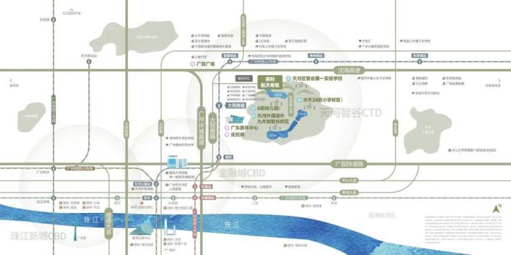 教育资源方面,项目自带6班幼儿园,板块内天河外国语智谷学校(中小学)即将于2025年9月开学,直线距离约500米,由广州天河外国语教育集团办学;周边还分布华阳奥体东小学、体育东灵秀小学、执信中学、清华湾中学,以及贝赛思、爱莎等优质私立学校,构成高密度名校圈。