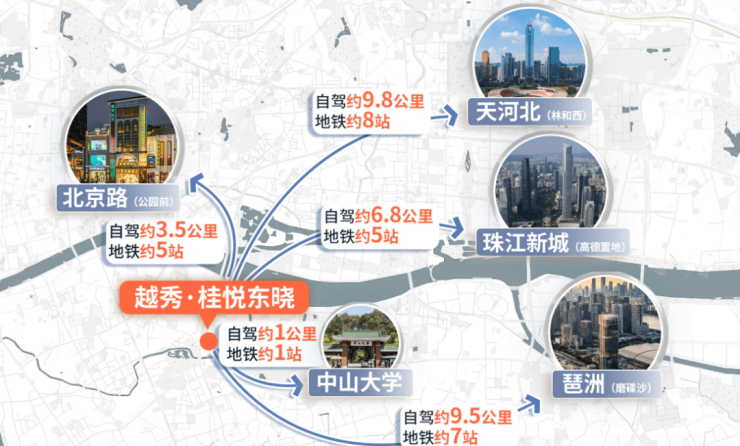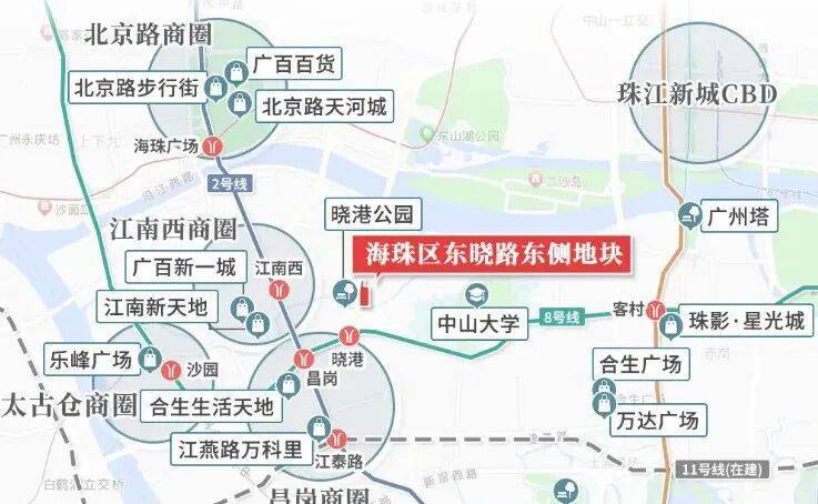 其次,是交通路网的通达性。距地铁8号线晓港站约600米,步行仅需10分钟,这一距离堪称“黄金通勤圈”。1站换乘2号线直达珠江新城,3站换乘3号线直通天河核心区,30分钟内覆盖广州最核心的商务商圈。这种“闹中取静、动静皆宜”的交通格局,是其他新兴板块难以比拟的。