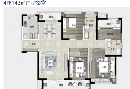 户型设计是功能主义与美学格调的统一。朝安金茂悦深刻理解现代家庭对空间功能性与居住舒适度的双重需求。以建面约99平方米的三房为例,在紧凑面积内实现了功能齐全的居住空间。约115-125平方米的四房户型,注重空间的流动性与家庭互动,力求在有限面积内创造更开阔的视觉感受与更合理的动静分区。而建面约136-143平方米的阔绰四房,则提供了更为奢适的尺度,满足多代同堂家庭对空间独立性与舒适性的高阶要求。全系户型方正通透,融合大师设计美学,预留了充足的收纳与智能化升级空间。