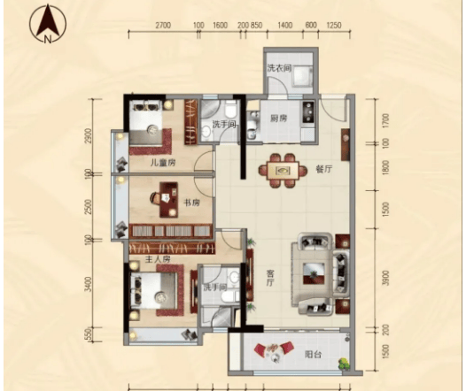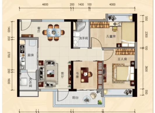 114㎡三房两厅两卫:阔绰三房设计,带主套间,私密性强,双阳台设计,厅出阳台,延伸客厅面积,足不出户即可欣赏珠江270°一线江景,儿童房、书房、主人房一字排开,动静分区清晰,适合改善型大家庭居住。