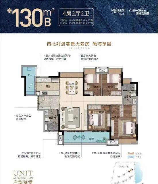 130-135㎡四至五房:大面宽、多阳台,满足三代同堂或二胎家庭空间需求;