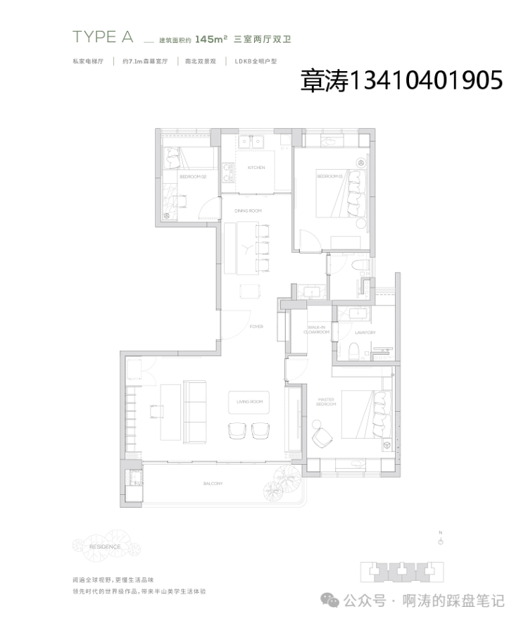 项目起步户型为145㎡三至六房,纯改善定位,业主均为城市高净值人群,圈层纯粹高端。