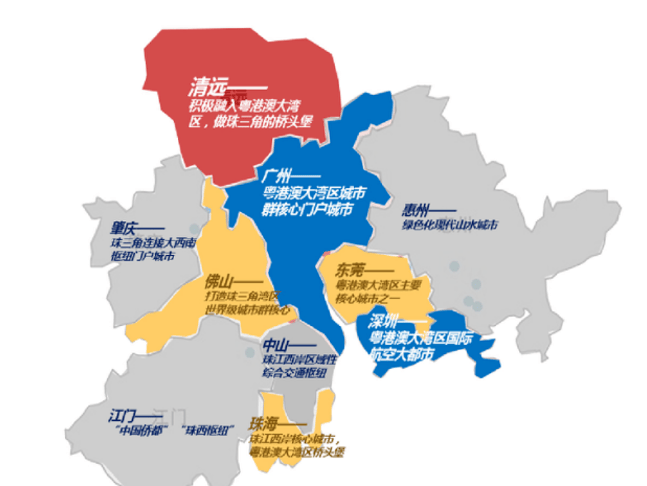 广州、深圳、东莞、珠海、佛山、清远等六大城市积极融入粤港澳大湾区建设,以之作为未来城市发展的重要方向。