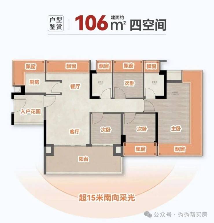 四房宽敞布局:每个房间面积均超 10㎡,主卧超 15㎡,次卧超 12㎡,儿童房超 10㎡,空间宽敞,居住无压抑感。