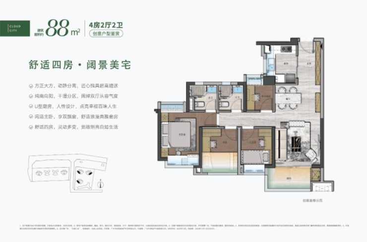 2. 88㎡四房:空间宽敞,采光优越适配三口之家