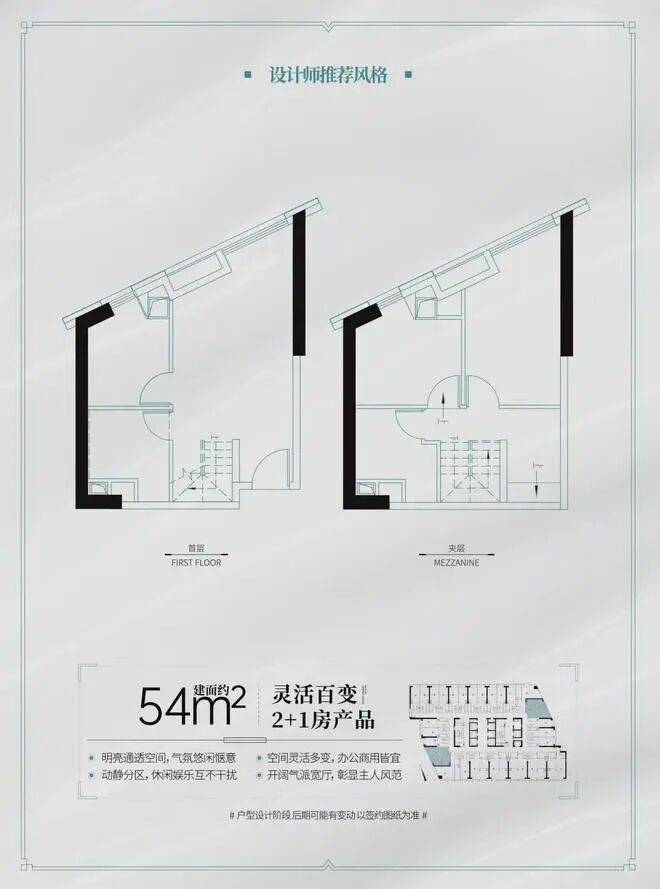 建面约54㎡高赠送2房(可明火)