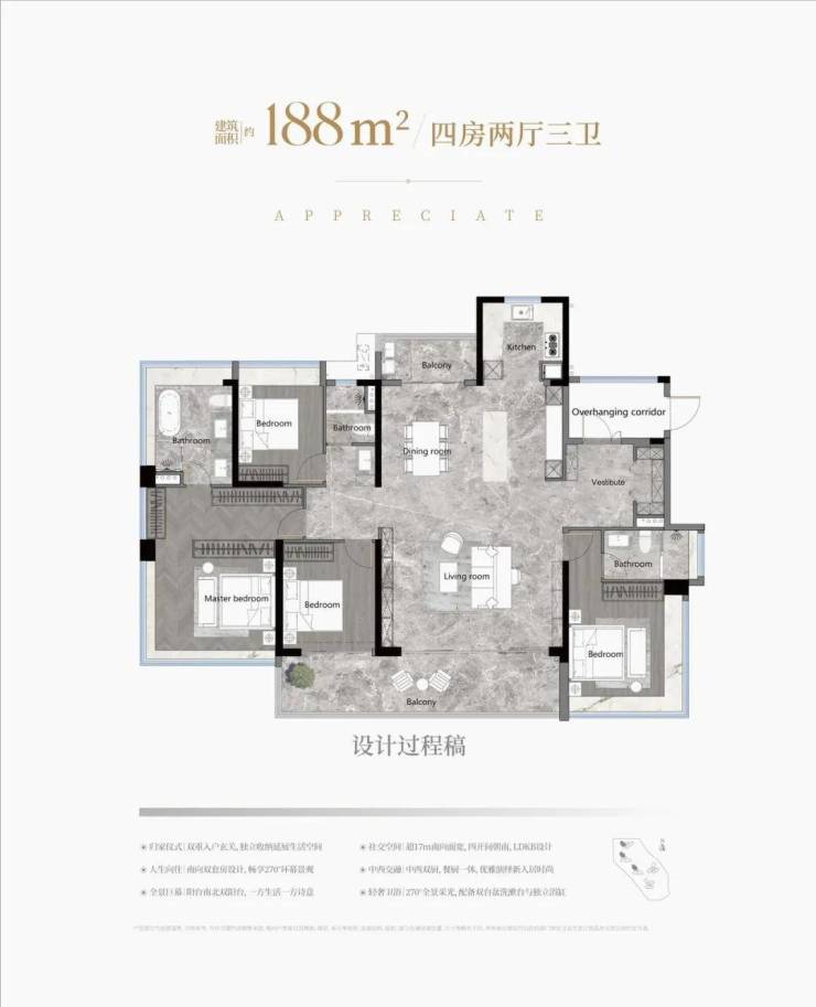 188㎡终极改善:南北对流双阳台+中西双厨,得房率超110%,私密性升级。