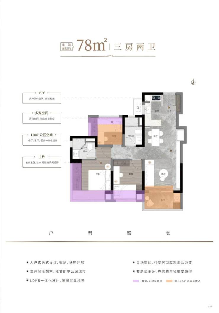 主力户型:78㎡三房两厅一卫(得房率81%)、98㎡四房两厅两卫(LDK一体化)