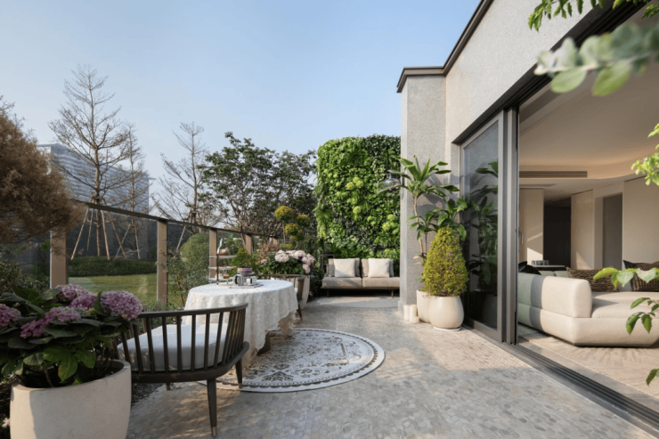 项目最大的亮点的是户户配备空中花园,根据地块规划设计条件,每户可设计一个或多个户属空中花园,面积不超过住宅套内面积40%的部分,不计入产权面积,相当于“白送”大面积使用空间,这在广州住宅市场中是绝无仅有的稀缺优势。空中花园采用错层设计,实现6米挑高,让私家花园变身空中庭院,不仅大幅提升了居住的舒适度和私密性,还让视线、日照、通风范围肉眼可见翻倍,业主可以在自家空中花园种花种草、休闲品茶、亲子互动,享受沉浸式的自然生活,充分满足现代人对高品质居住环境的追求。