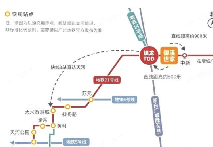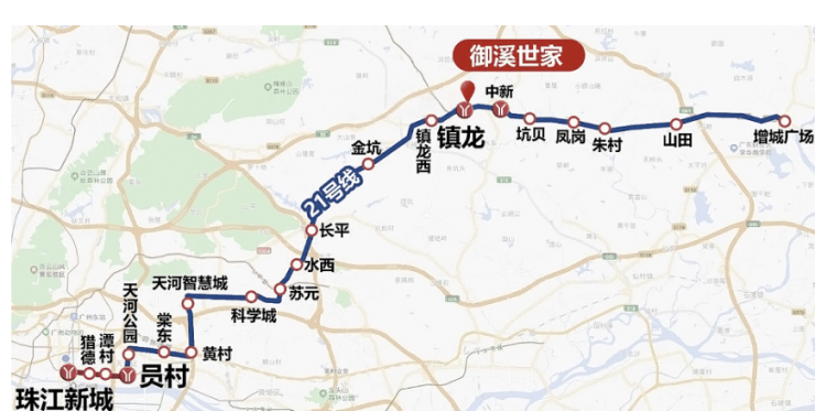 御溪世家在交通方面具有得天独厚的优势。项目距离地铁21号线中新站约1000米,镇龙站也仅约1000米,快线3站即可到达天河,7站直达珠江新城,出行极为便捷。同时,项目还提供业主楼巴车接驳地铁口,让您的出行更加无忧。此外,穗莞深-新白广城际【镇龙站】北至白云机场,南达深圳宝安机场,西连广州东站,通达佛山西站,速达大湾区各核心城市。四纵路网(华快、京港澳、新新大道、珠三角环线)和六横路网(广河高速、广汕公路、花莞高速、增天高速、广园快速、济广高速)的交汇,让御溪世家成为交通枢纽,畅达全城繁华。售楼处24小时电话400-0688-602,了解更多交通详情,预约专属看房服务!