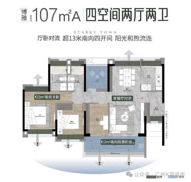· 4.5 开间朝南,客厅主卧双南北对流
