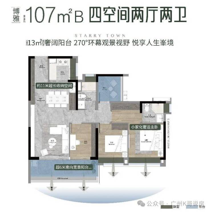 ·双面宽观景阳台,南北满飘窗,实用率超高