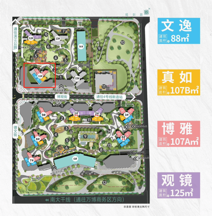 二期规划有4栋住宅,距离南大干线比一期远些,居住舒适度比一期要好。