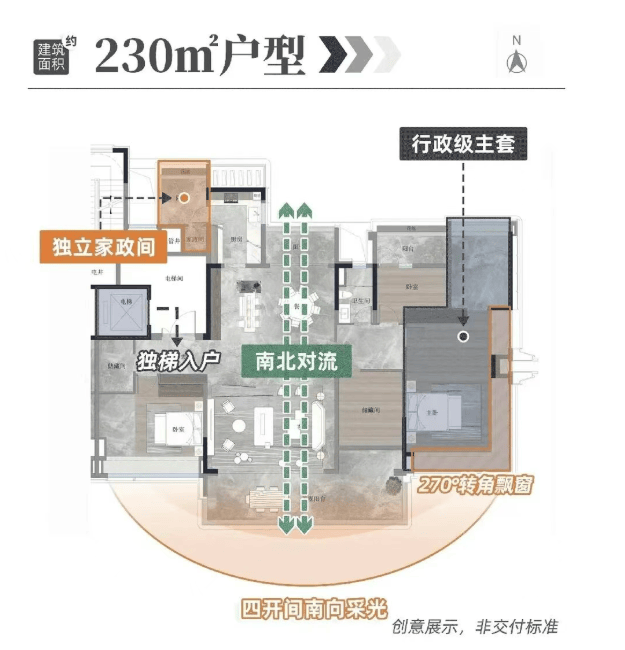 特别值得一提的是19栋。这栋楼总层高只有15层,采用了板式结构设计。无论楼间距还是采光通风效果,都有着更高质的表现。预计2026年12月收楼,让业主能更快入住新家。19栋的230平方米户型,拥有私家电梯厅、双主套、独立佣人房、南北对流、LDKB大方厅、主卧L型270°飘窗等豪华配置,大大提升了整体的空间体验。
