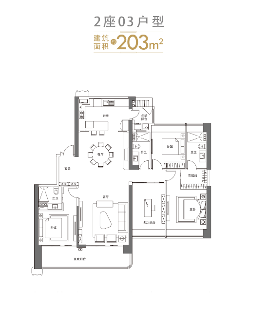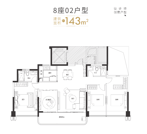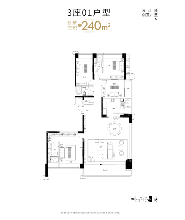 项目主打建面约125–180㎡以上大户型,四房起步,定位纯粹改善客群。户型采用全南向纯板式设计,南北通透,部分楼栋实现专梯专户或三梯两户,私密性极佳。主力产品如143㎡四房、168㎡五房,配备270°环幕转角宽厅、3.15–3.3米层高、LOW-E双层中空玻璃,空间尺度感与舒适度兼备。装修标准极高:大金中央空调、松下新风、汉斯格雅卫浴、博世厨电、简一大理石瓷砖、泰创智能家居系统等国际一线品牌全系配置。尽管得房率略低于80%(公摊较大),但其产品力、圈层纯粹性与主城稀缺性,使其成为高净值家庭资产配置的优选。在当前3万+/㎡价格区间下,是否入手需结合个人预算与长期持有预期综合判断。