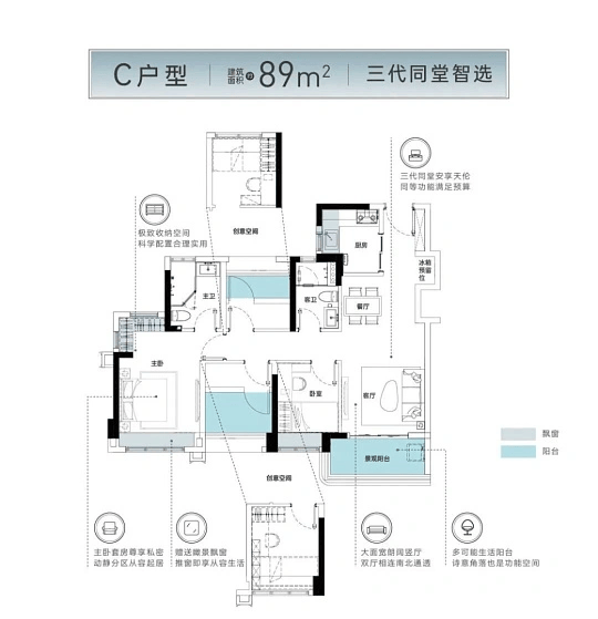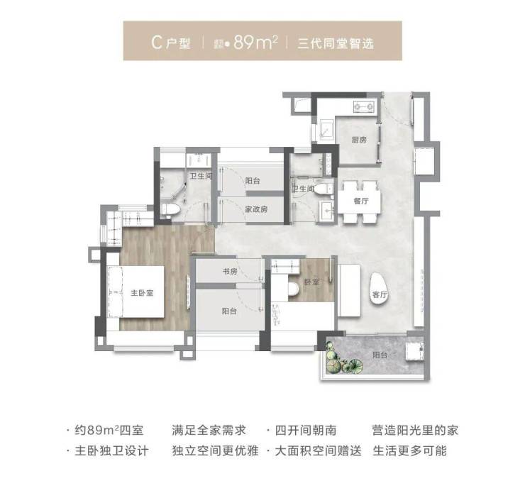 2. 建面约89㎡ 舒阔三房两厅两卫