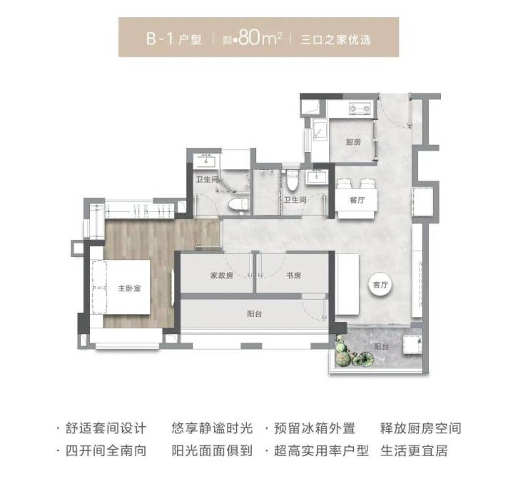 这是项目的“王牌”改善户型,在有限面积内实现了功能最大化和舒适度提升。