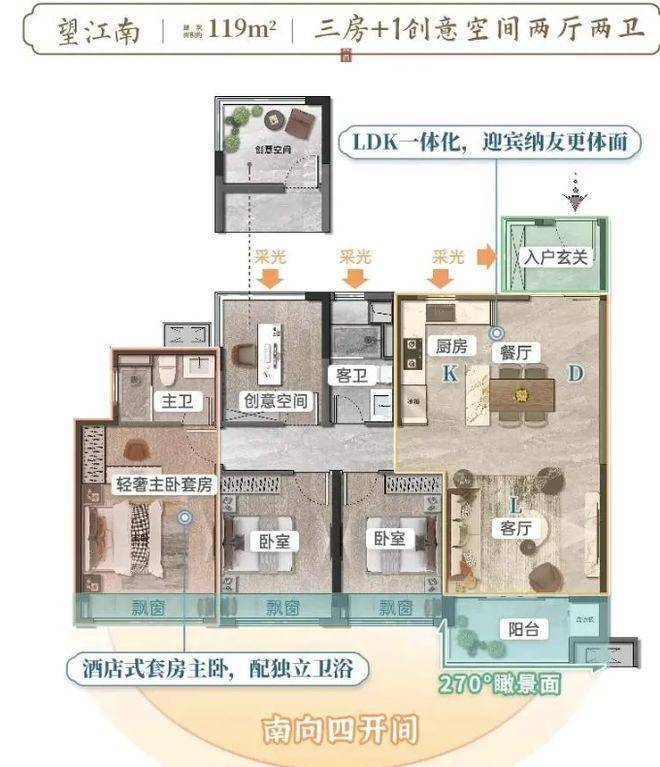 建面约 119㎡ 3 房 + 1 创意空间户型