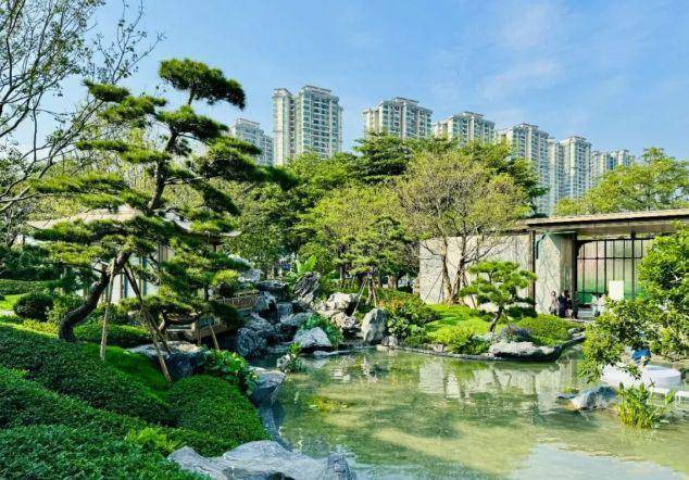 园林以《饮茶游园》为主题,占地约 2.52 万方,打造五进院落、九境景观,将东方园林的神韵展现得淋漓尽致。经过轩堂和小飞虹,仿佛穿越时空,感受到浓厚的东方文化氛围。园林不仅是美观的景观,更是居民休闲散步、亲近自然的好去处,为忙碌的生活增添了一份宁静与惬意。