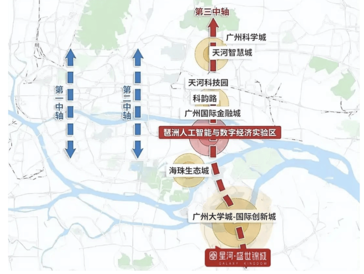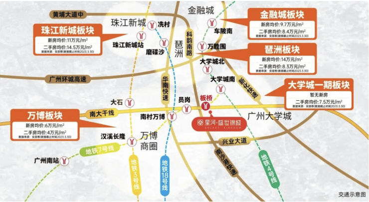 项目位于万博核心区,与长隆万博、广州塔琶洲双世界级商圈环绕,形成繁华辐射圈。周边“三大科创智慧产业带”交汇:广深港澳科技创新走廊、广州科技创新轴及南大干线经济带,承载创新企业、科技型产业及高端人才资源。区域内交通立体化,高速路网与轨道交通互联,双地铁加持,实现30分钟主城生活圈。黄金区位不仅提供居住便利,也带来投资与资产增值潜力。